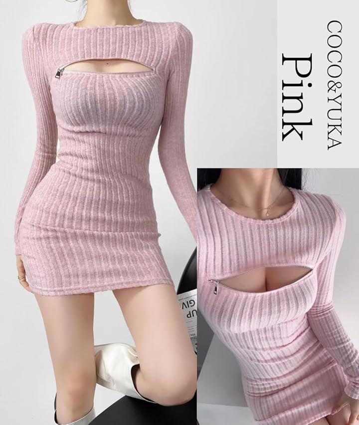 このリブニットワンピースは、女性らしさを魅せるボディコンシルエットと、胸元のジッパーデザインがアクセントになったセクシーでトレンド感溢れる一着です。