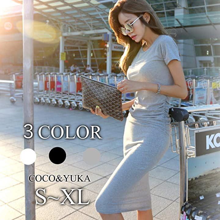 ・グレー , ブラック , ホワイト ( S ) 着丈104cm バスト72cm ウエスト60cm ヒップ72cm 袖丈13cm ( M ) 着丈106cm バスト76cm ウエスト62cm ヒップ76cm 袖丈14cm ( L ) 着丈108cm バスト80cm ウエスト64cm ヒップ80cm 袖丈15cm *全体的にストレッチあり