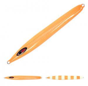 アピール力、集魚力の高いセミロングジグ!セミロングの最大の魅力は、シルエットが大きい事。すなわち魚に対してのアピール力、集魚効果がショートタイプのジグと比較しても絶大である。操作性においても、上げ・フォールのどちらのアクションでもアプローチできるアイテムに仕上がっている。回遊性のある青物(ブリ・カンパチなど)、また中深海で警戒心の強い魚(アカムツなど)も違和感 なく捕食対象に当てはまるシルエットである事から、テスト段階では様々な魚種を連発させる。潮流は比較的緩い流れでのポイントや二枚潮のきついポイントでも対応可能。テストエリアにおいてのターゲットは、ブリ・カンパチ・ハタ類・アカムツ。