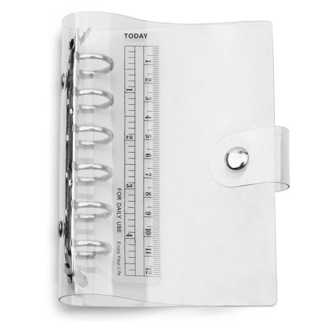 サイズ:バインダー◆商品名:SFLHHDM透明6穴バインダー,A7リフィル式手帳,防水カバー付き,メタルリング,スナップボタン留め,個人情報管理ノート可愛い定規付きシステム手帳カバー(A7,バインダー)