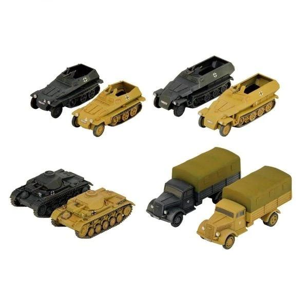 ピットロード 1/144 WWII ドイツ陸軍 軍用車両セット 1 SGKシリーズ プラモデル SGK02 好評発売中の「SN23SP:1/144 ドイツ空軍 輸送機 Me323E-2 ギガント スペシャル」の付属車両をセットで発売します。1/144スケールという小粒ながら、可能な限りディテールを加え、なおかつ組み立てやすさを追求しました。・Sd.Kfz.250 軽装甲兵員車(全長:約32mm)・Sd.Kfz.251 中型装甲兵員車(全長:約39mm)・II号戦車F型(全長:約33mm)・Kfz.305 トラック(全長:約43mm) 各2両入り・部隊マーク、車両番号のデカール付属1/144スケールプラスチックモデル※組み立て・塗装の必要なプラモデルです。完成品ではございませんのでご注意ください。