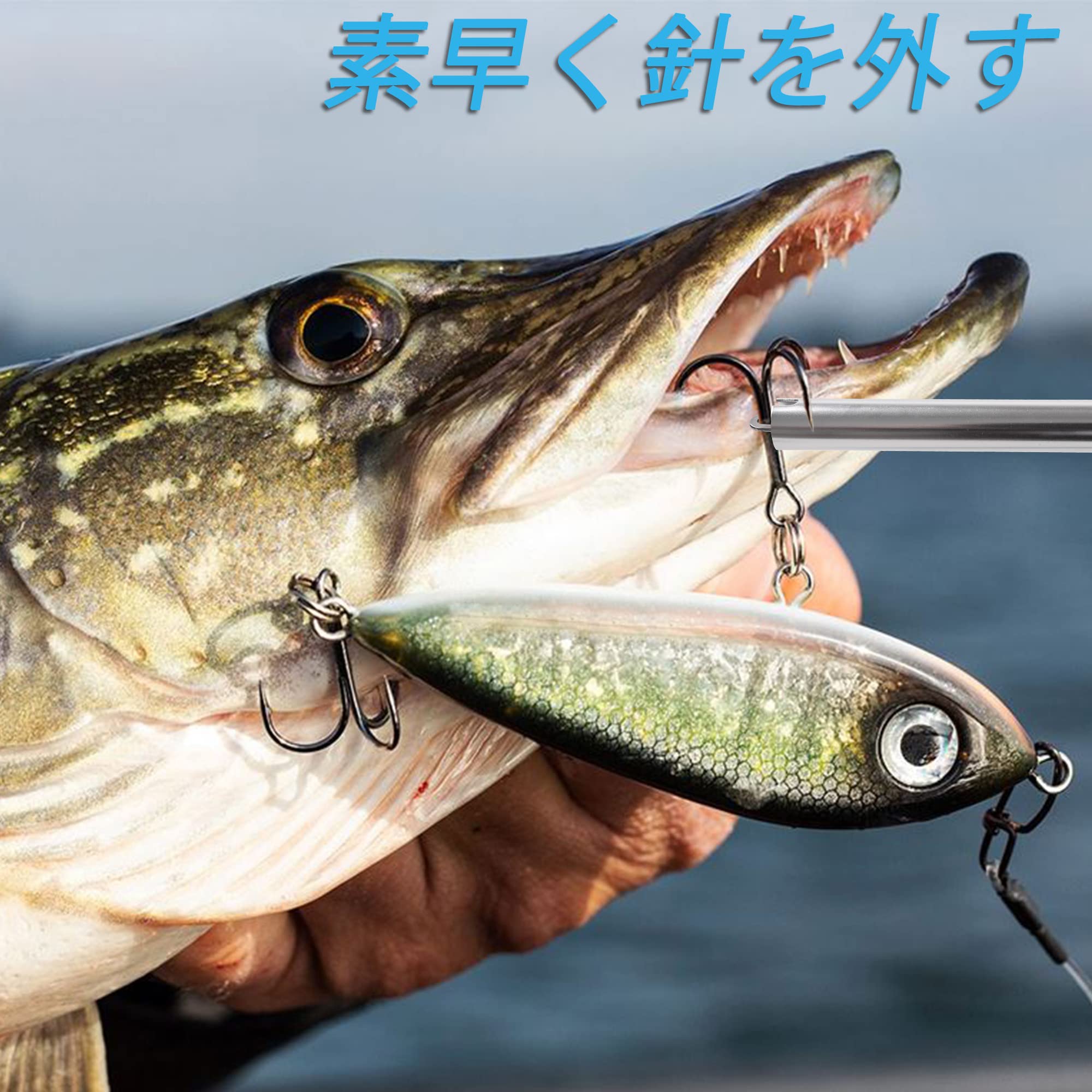 サイズ:23.5cm*7.3cm 重さ:針外し約50g/3in1スパイラルコードと針外し約64g 多種色セットと3in1スパイラルコードの多種セット選択可能 小型魚から大型魚まで針を飲まれた時には素手で針を外そうとすると魚が暴れた時に針で手を傷つけてしまう可能性があり、この時魚を触れず、魚口の奥までしっかりと入っていけました。このアイテムを使用すると助かります。 <注意事項> 安全のため、子供や幼児の手の届かないところに保管してください。 釣り以外の目的で使用しないでください。 使用後は清水で洗い流しながら汚れを落とし、水分を拭き取ってから保管してください。 特別説明: この商品は当店のオリジナル仕様です。 1、画像中のサイズなどはおおよその参考になり、製品のサイズは人工測りにより多少の誤差が生じる場合がございますので、予めご了承の上ご購入ください。 2、撮影やディスプレイによって、ご使用の液晶によって色が画像と多少異なる場合がございます。ご理解のほどご購入ください。なるべく実際の色に近づけるように努力しております。