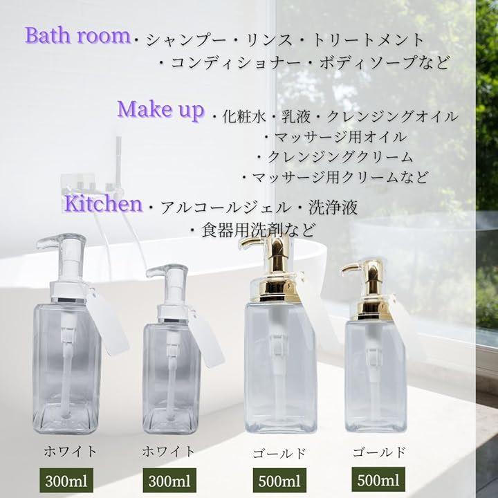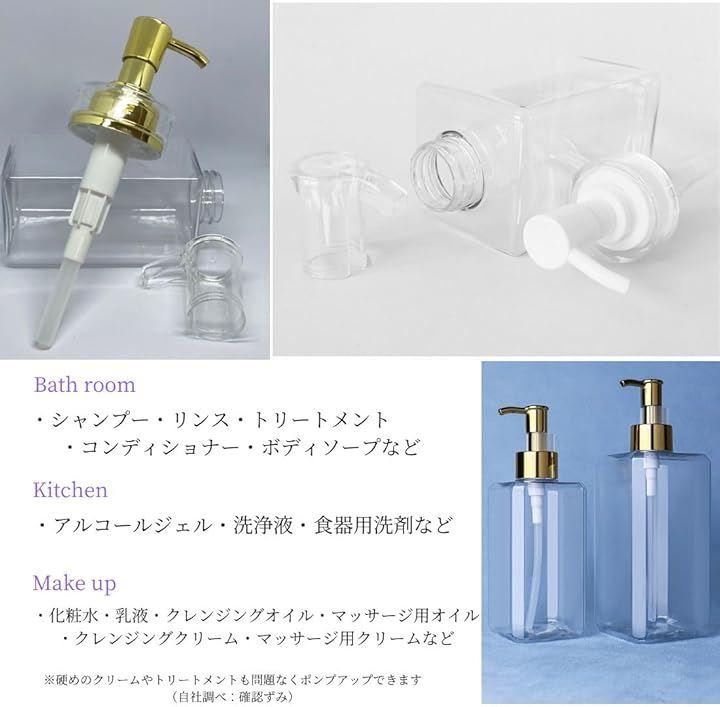 「多用途」バスルームでお使いになられるシャンプー・リンス・トリートメント・コンディショナー・ボディソープなどを詰め替えて詰替ボトルとしてお使いいただけます。
