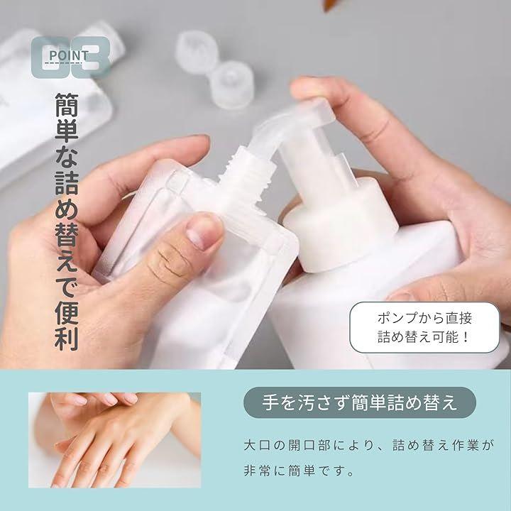手を汚すことなく液体をスムーズに移し替えられ、シャンプーやボディソープ、化粧水など、さまざまな液体をストレスなく詰め替えできます。