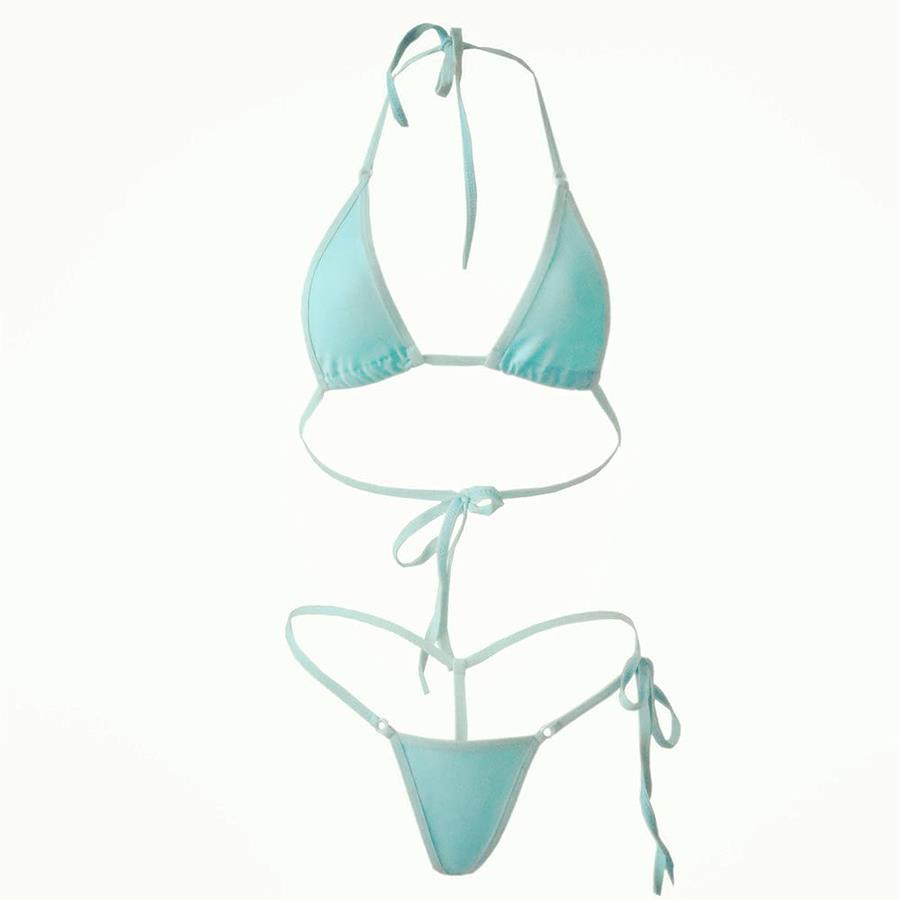 SHANLITAO Extreme Sexy Micro Bikini, Tiny Micro Swimsuit Cosplay Costume, String Panties, Halter Neck, Mini Bra + Bikini T-Shorts