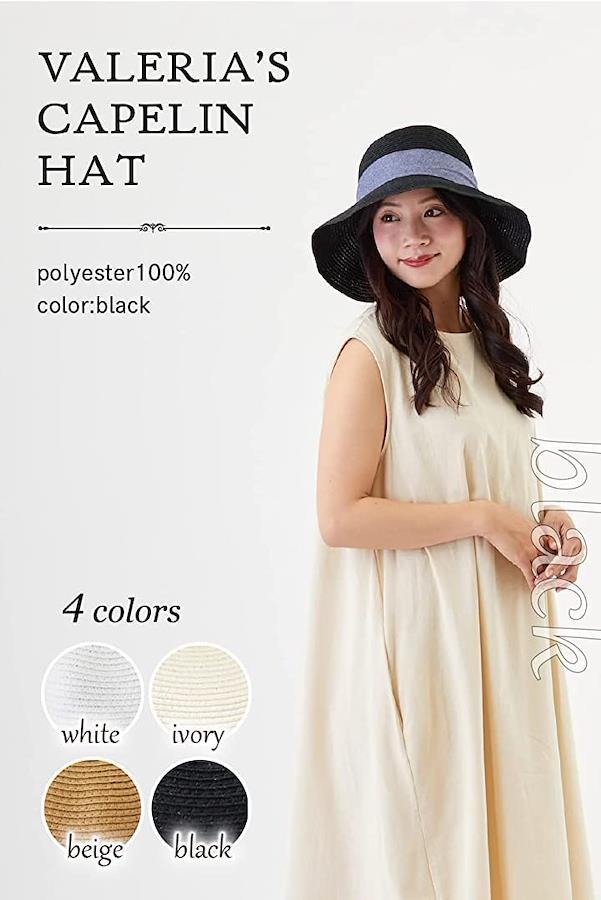 ・大きめリボンがアクセントのつば広キャペリンハットです。