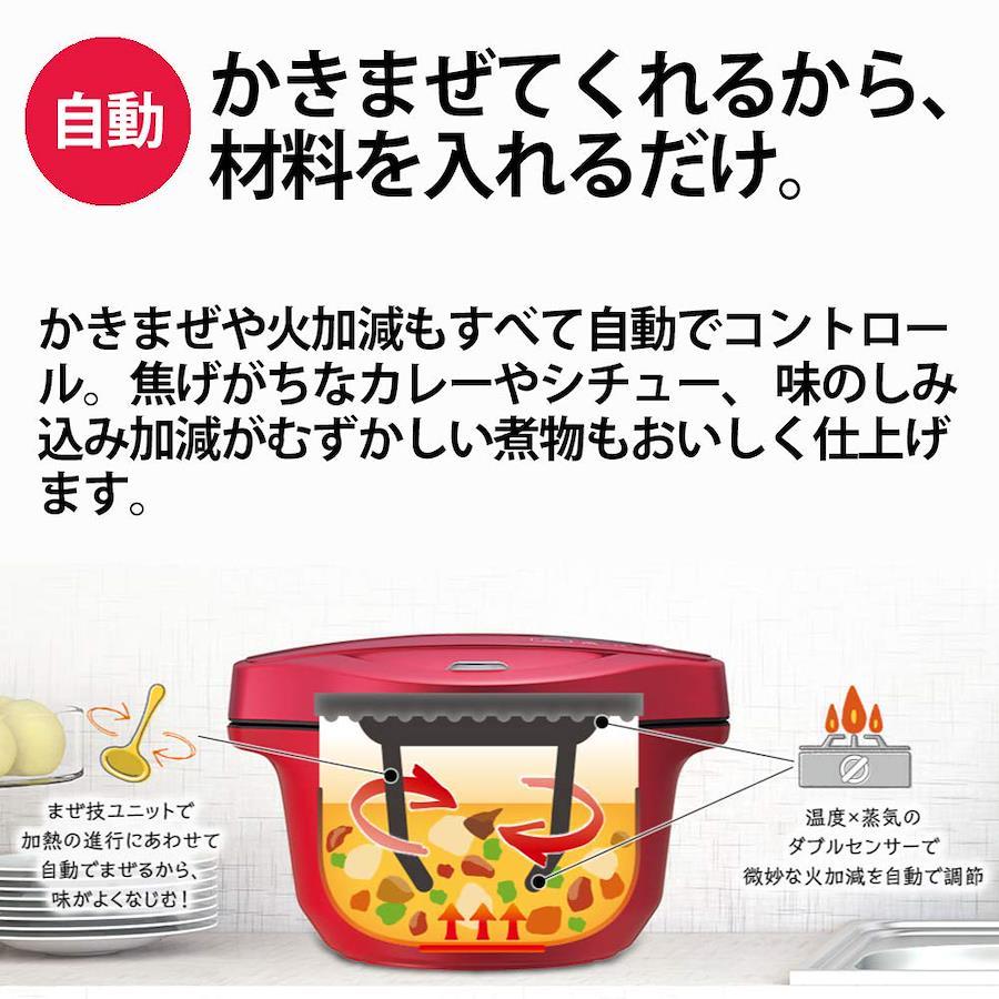 水なし・自動・予約調理。無水&自動調理だから、ほったらかしでも、手間をかけたような味。便利な予約調理で、帰宅後すぐにごはんが食べられる。パーツの取り外しがカンタンにでき、食洗機でも洗えます。最大12時間の保温が可能。また、一度調理が終わったものを、あたため直すこともできます。