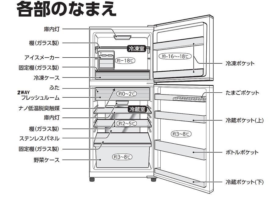 ■冷凍室ー大量の食材ストックにこたえる178Lメガフリーザー使いやすいエリアにセットできる「フリーアドレスアイスメーカー」ステーキ肉や魚など薄型食材をすっきり収納 スライドケースお急ぎ冷凍やタイマー冷凍を搭載 多彩な便利な冷凍モード■冷蔵室ーステンレスパネルで庫内にうるおいを補給ドア開閉時に入る湿気をステンレスパネルに吸着し、うるおいとして庫内に補給。食品の乾燥を抑えて鮮度を保護大物野菜もそのまま入る野菜ケース・大量収納でもスムーズ開閉をローラーでサポート蓋の開閉でフレッシュルーム・冷蔵を自由に切替・2WAYフレッシュルーム■多彩な機能ドアを開けずに機能設定が可能 ドア操作部 タッチコントロール除菌しながらおいしく鮮度を守る プラズマクラスター
