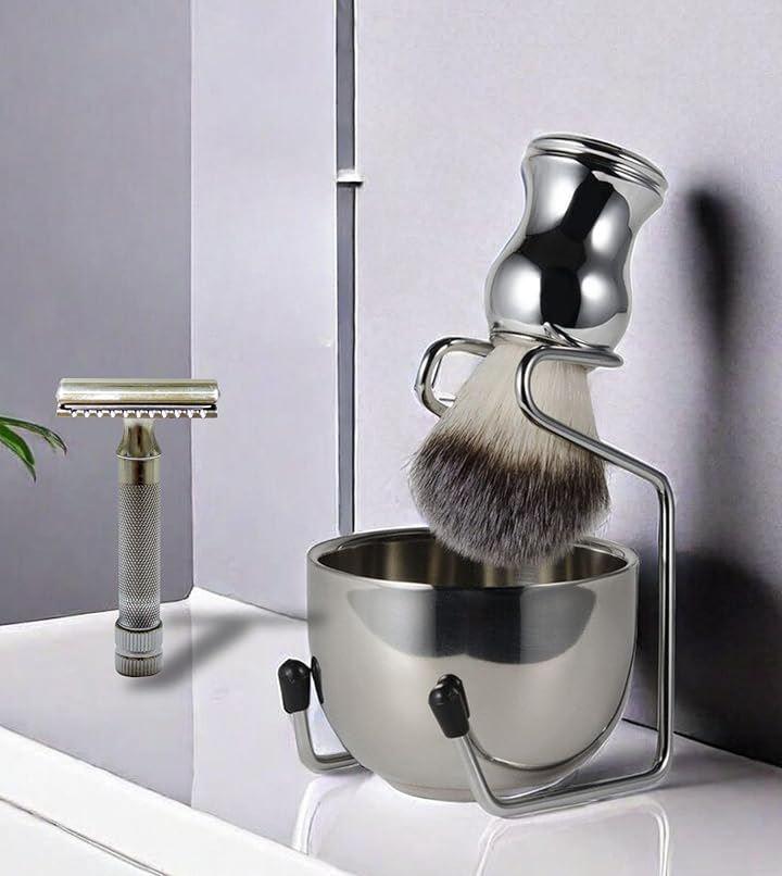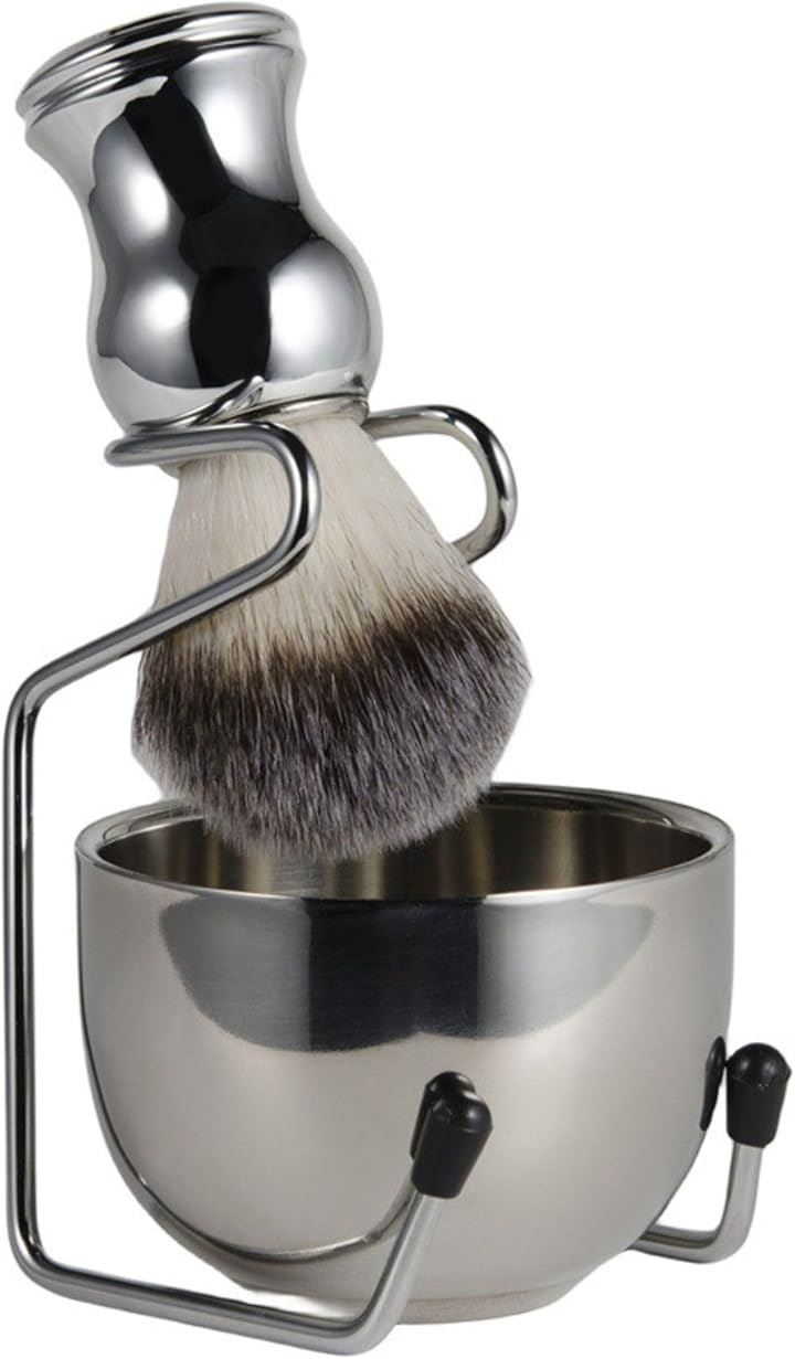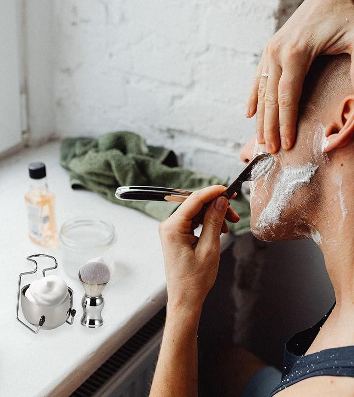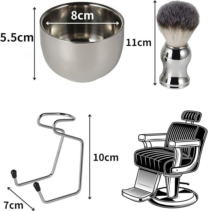 ステンレス製石鹸ボウル付き: 高品質ステンレスで作られた石鹸ボウルが、手軽に豊かな泡を作り出し、滑らかなシェービングをサポートします。
