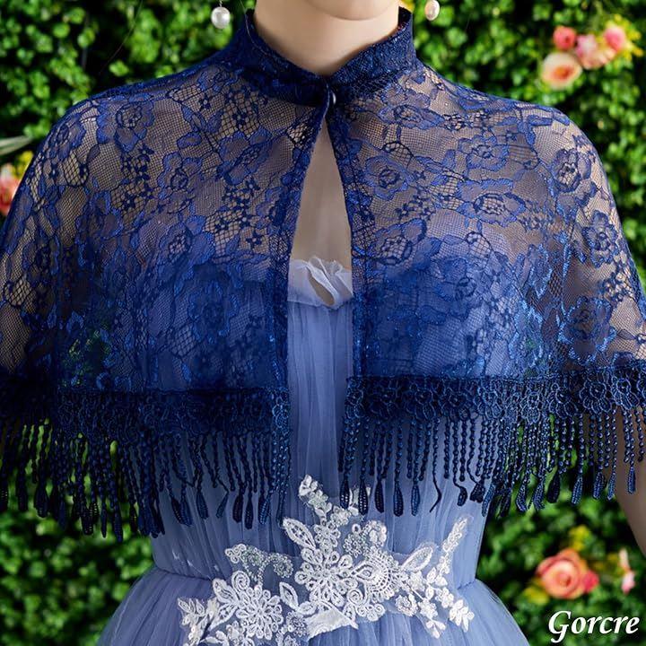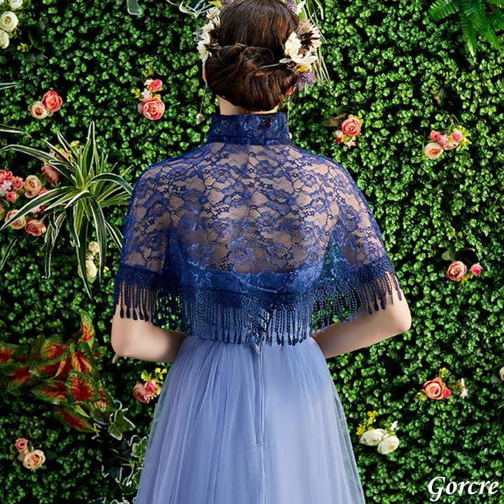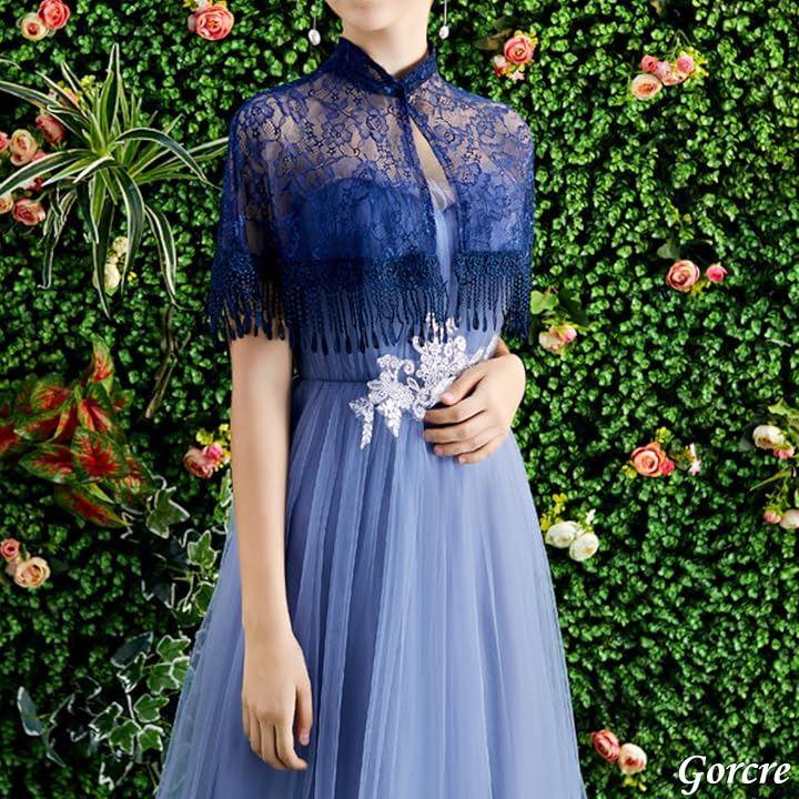 ドレスに羽織るだけで、花柄のレースが華やかで上品な印象に。