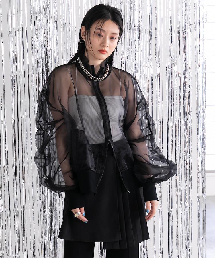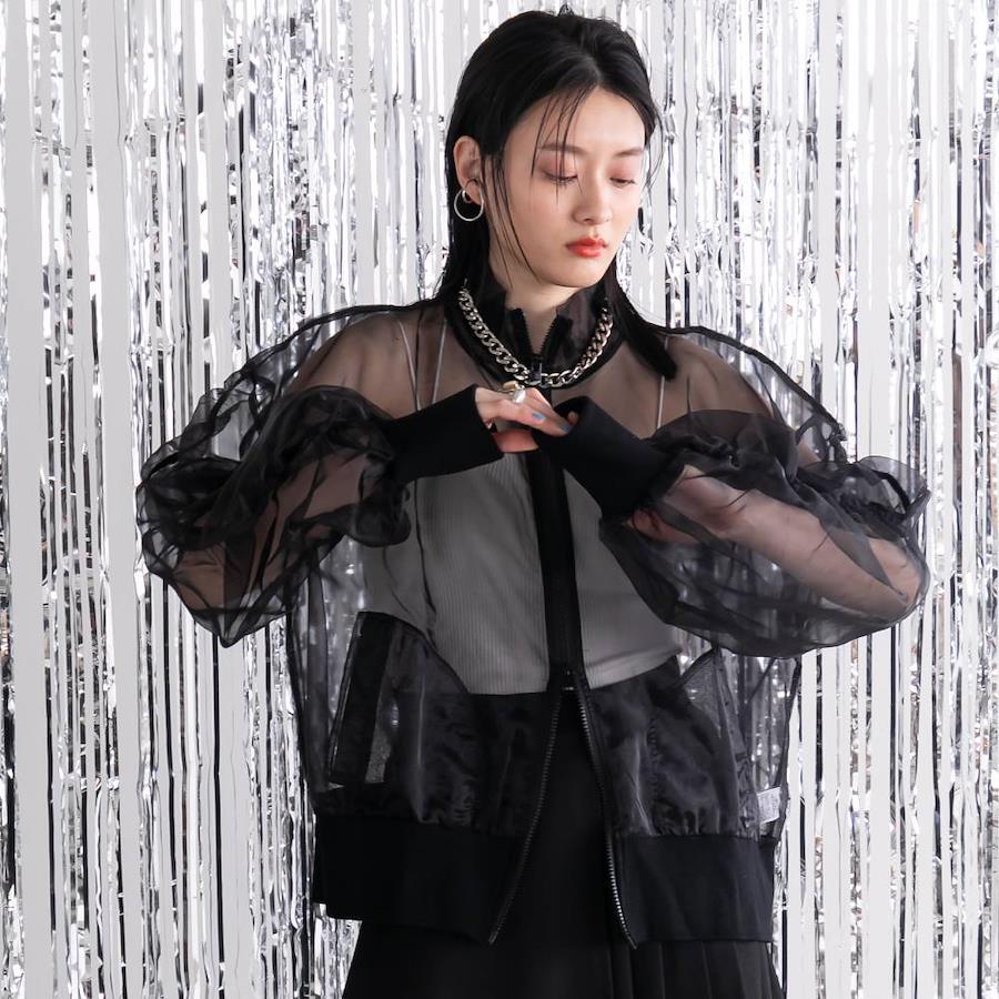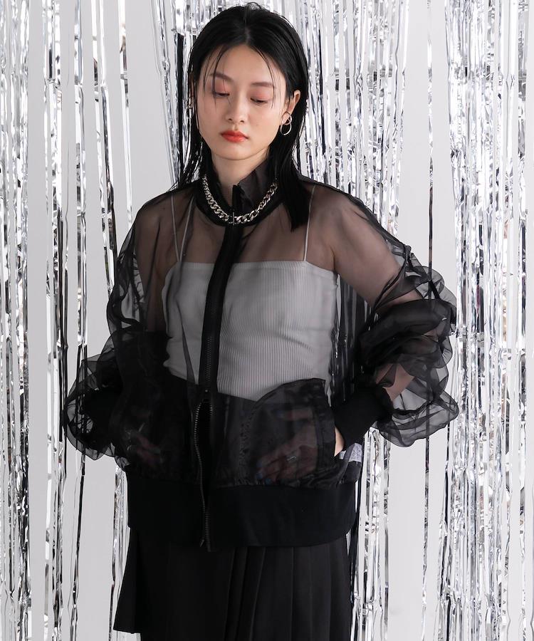 トレンドの“シアー”をたっぷり使ったブルゾン女性らしいシアー素材×カジュアルなブルゾンでこなれ感ばっちりな1枚に
