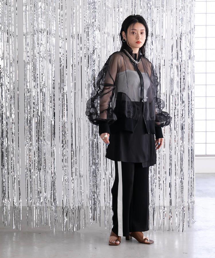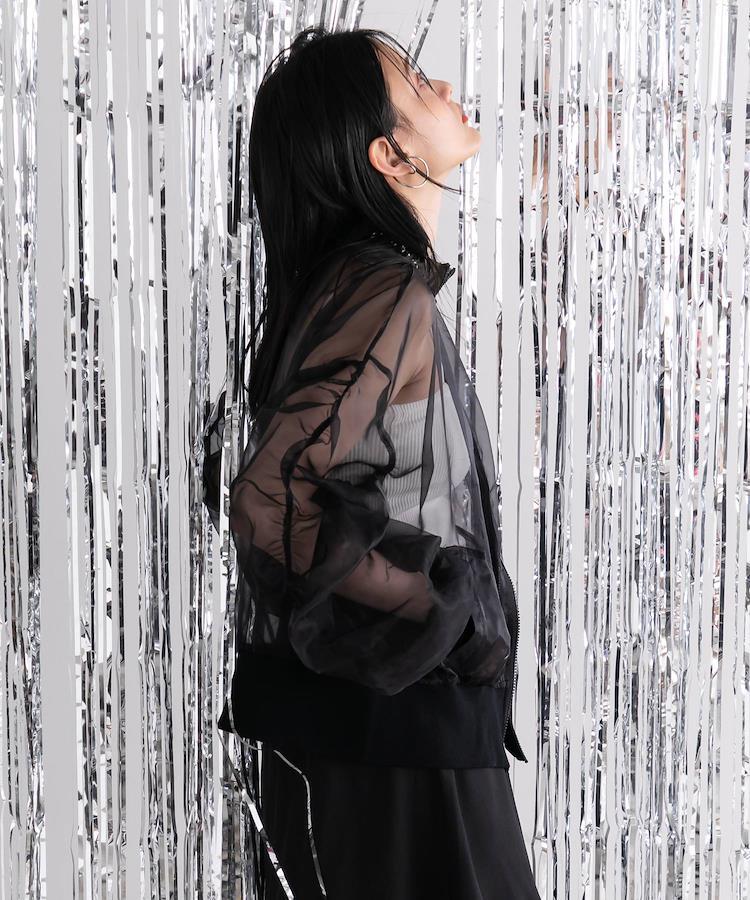 トレンドの“シアー”をたっぷり使ったブルゾン女性らしいシアー素材×カジュアルなブルゾンでこなれ感ばっちりな1枚に
