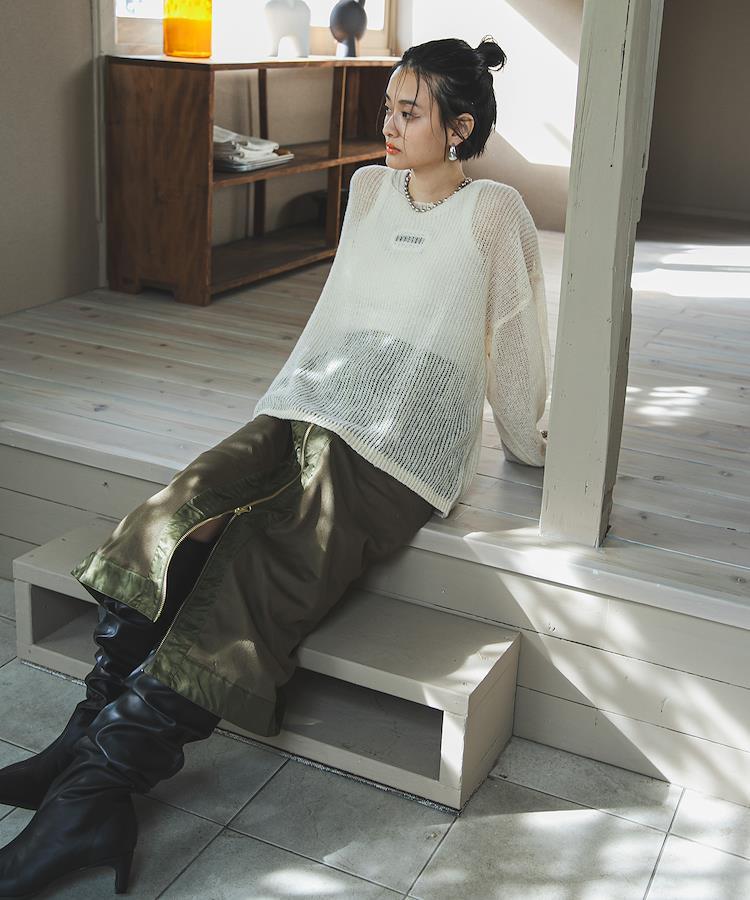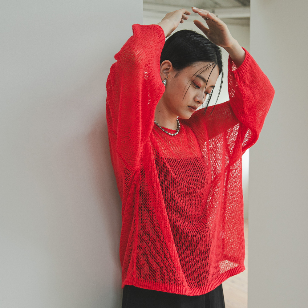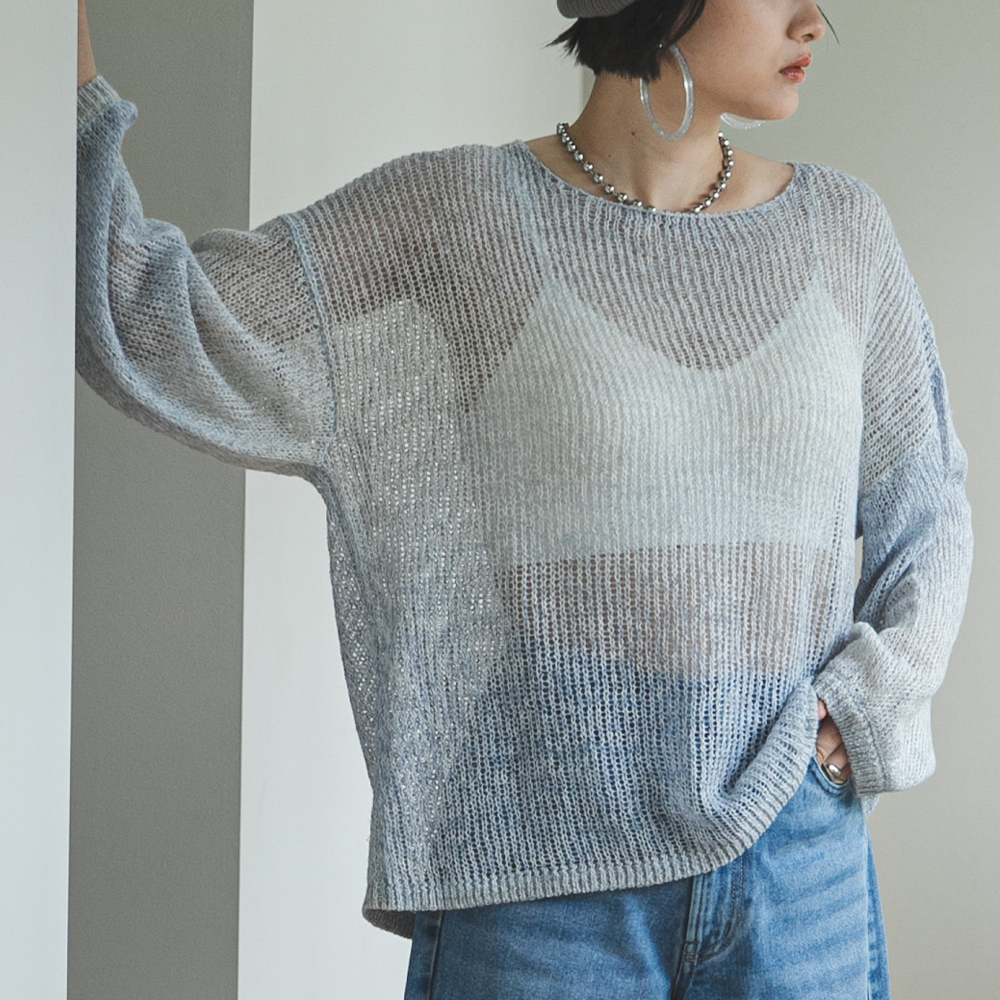モヘヤ(モヘア)混の糸を使用した、軽く柔らかい着心地でシアー感のあるニット。