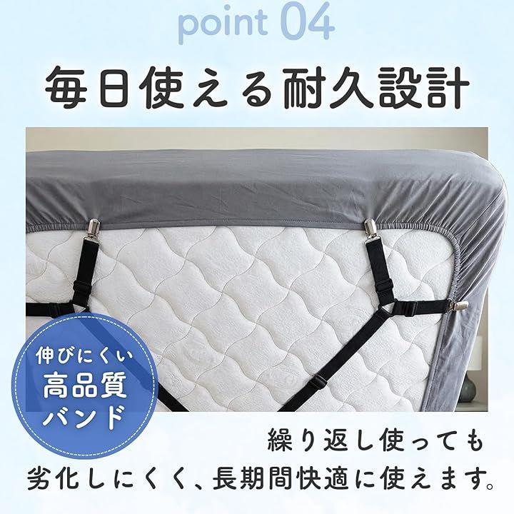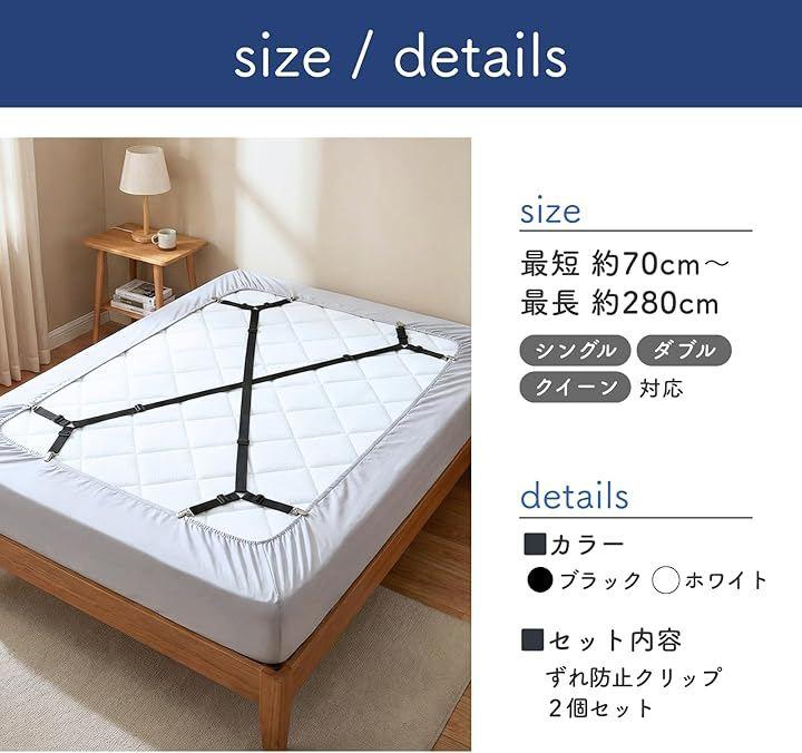 「快適な睡眠環境を実現」シーツクリップで寝ている間のシーツのずれを防ぎ、朝まで整った状態をキープします。