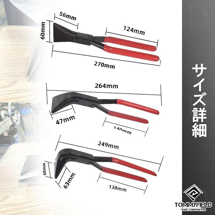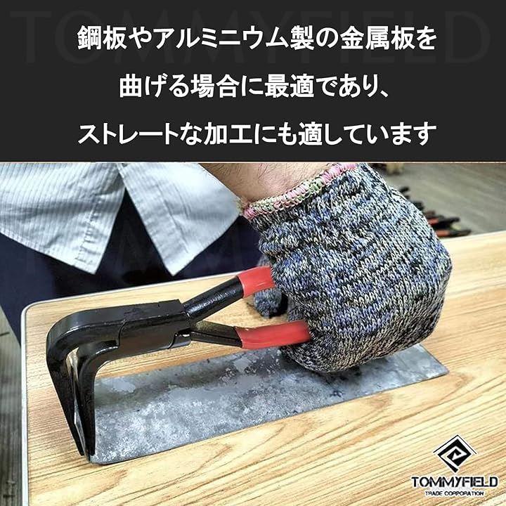 鉄板や金属板の折り曲げ作業に最適なこのペンチは、しっかりとした耐久性と操作性を兼ね備えています。