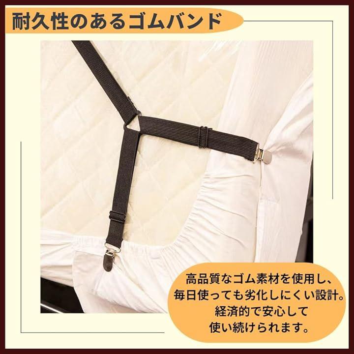 「薄手素材でも安心」3mm程度の薄いシーツや敷きパッドでもしっかり挟み込み、固定できるよう設計されています。