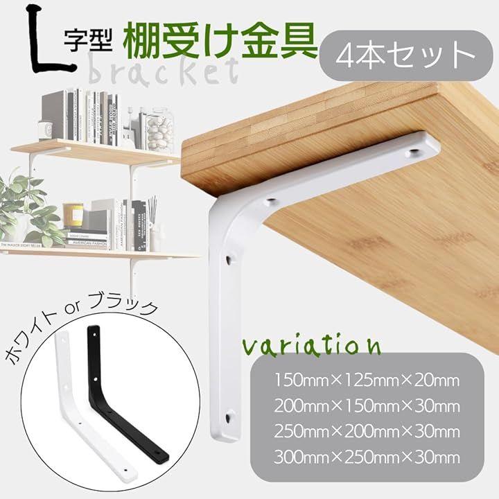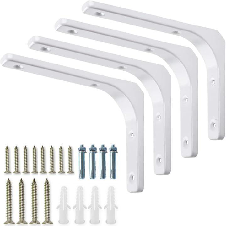 「シンプルでありながら高機能」洗練された白色のスチール製L字型ブラケット4本セット。