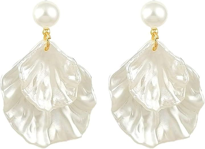 「貝殻のように揺れる上品デザイン」柔らかく波打つシェルモチーフが美しく揺れ、耳元を華やかに演出する。