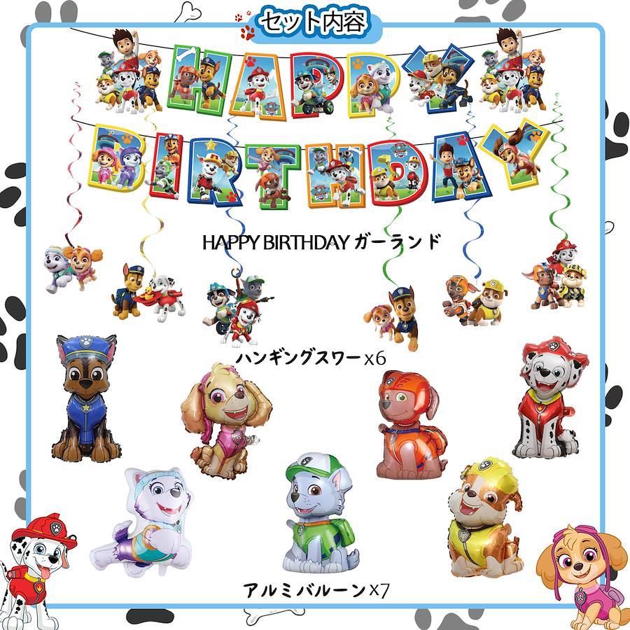 【誕生日飾り付けセット】①HAPPY BIRTHDAYガーランド、②アルミバルーンx7、③ハンギングスワーx6