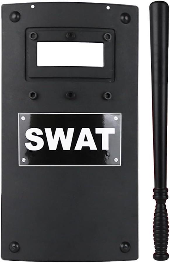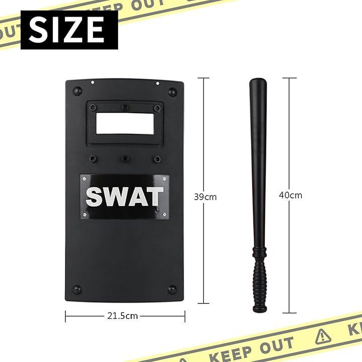 おもちゃの盾で、ポリスやスワットのリアルな装備を体験。