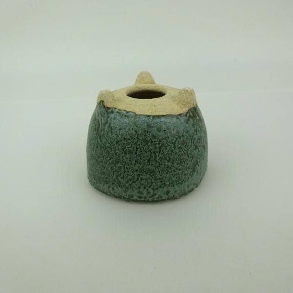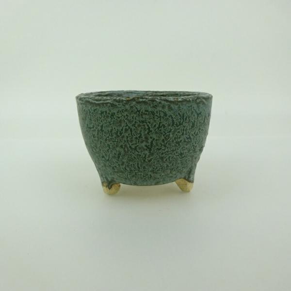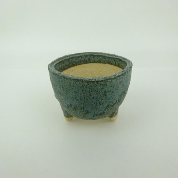 Shigaraki ware bonsai pot, small, approximately 7.3cm long, round, glazed, ornamental, brand new.