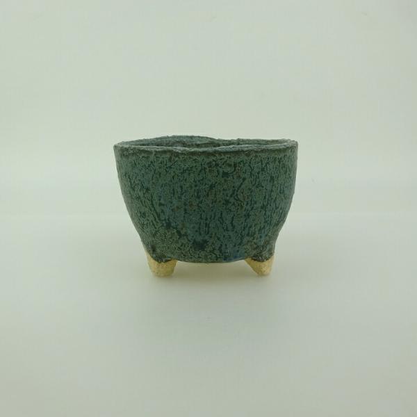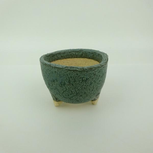 Shigaraki ware bonsai pot, small, approximately 7.6cm long, round, glazed, ornamental, brand new.