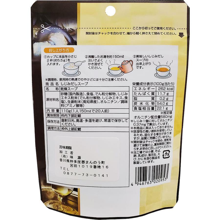 〇商品説明しじみのだしがきいた、うま味たっぷりのしじみだしスープです。●アクセントに高知県産生姜をきかせました。●お酒を楽しむお供に、お味噌汁等の料理の隠し味に、色々な用途でたっぷりお使いいただけます。●家飲みのお供やお酒の後のリカバリーにもぴったりです。●色々な使い方ができるよう、チャック付きです。●1袋にオルニチン638mg配合。