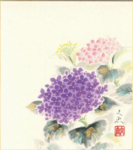 作品名: 紫陽花 作者: 中谷文魚 サイズ: W24.2xH27.17cm 材質: 和紙 収納: 紙袋 産地: 日本 用途: 夏掛け |