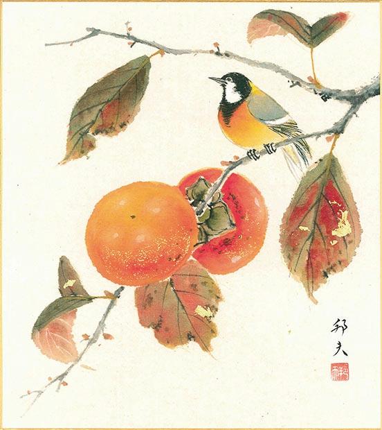 作品名: 柿 作者: 片山邦夫 サイズ: W24.2xH27.2cm 材質: 和紙 収納: 紙袋 産地: 日本 用途: 秋掛け |