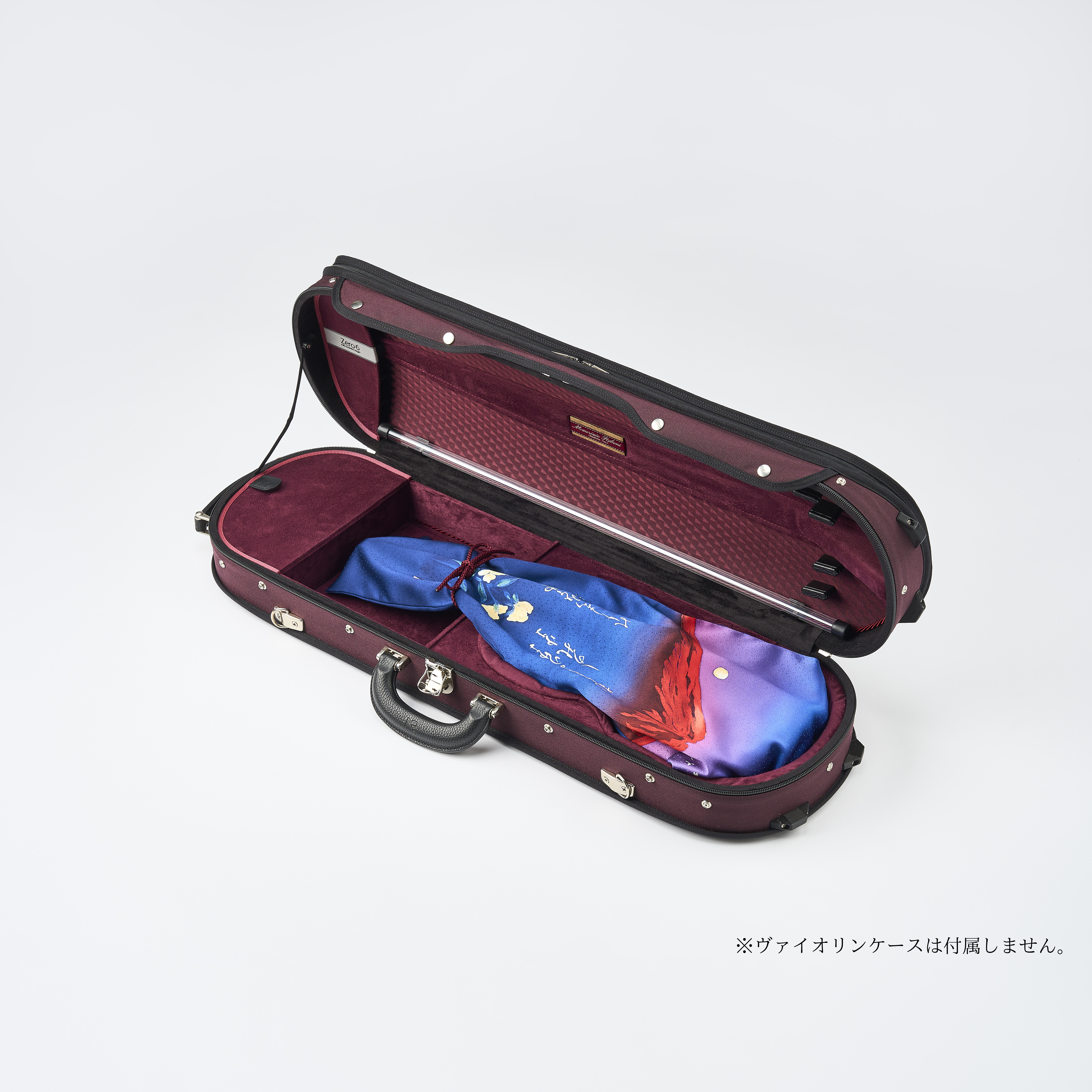 提琴衣(ていきんえ)作品名:赤富士意匠制作:木下秀硯 氏ヴァイオリン保護袋サイズ (提琴衣は4/4大人用ヴァイオリンが入る大きさです。)口幅 30cm底幅 17cm長さ 76cm販売価格 297,000円(税込)(提琴)ヴァイオリンに、(衣)きものを纏わせる提琴衣は、日本の衣文化である「きもの」から着想を得て制作された、ケース内でヴァイオリンを保護するヴァイオリン保護袋です。京都の伝統工芸の技術をもとに、職人の手仕事によって作り出される一点ものです。生地には正絹(絹100%)の着物生地を使用。正絹は吸湿・放湿にとても優れており、湿度変化に弱いヴァイオリンの保管に適した素材です。そして縫製は、熟練和裁士監修によるきものの仕立てを応用した完全手縫い仕立てで、楽器をやさしく包み込みます。