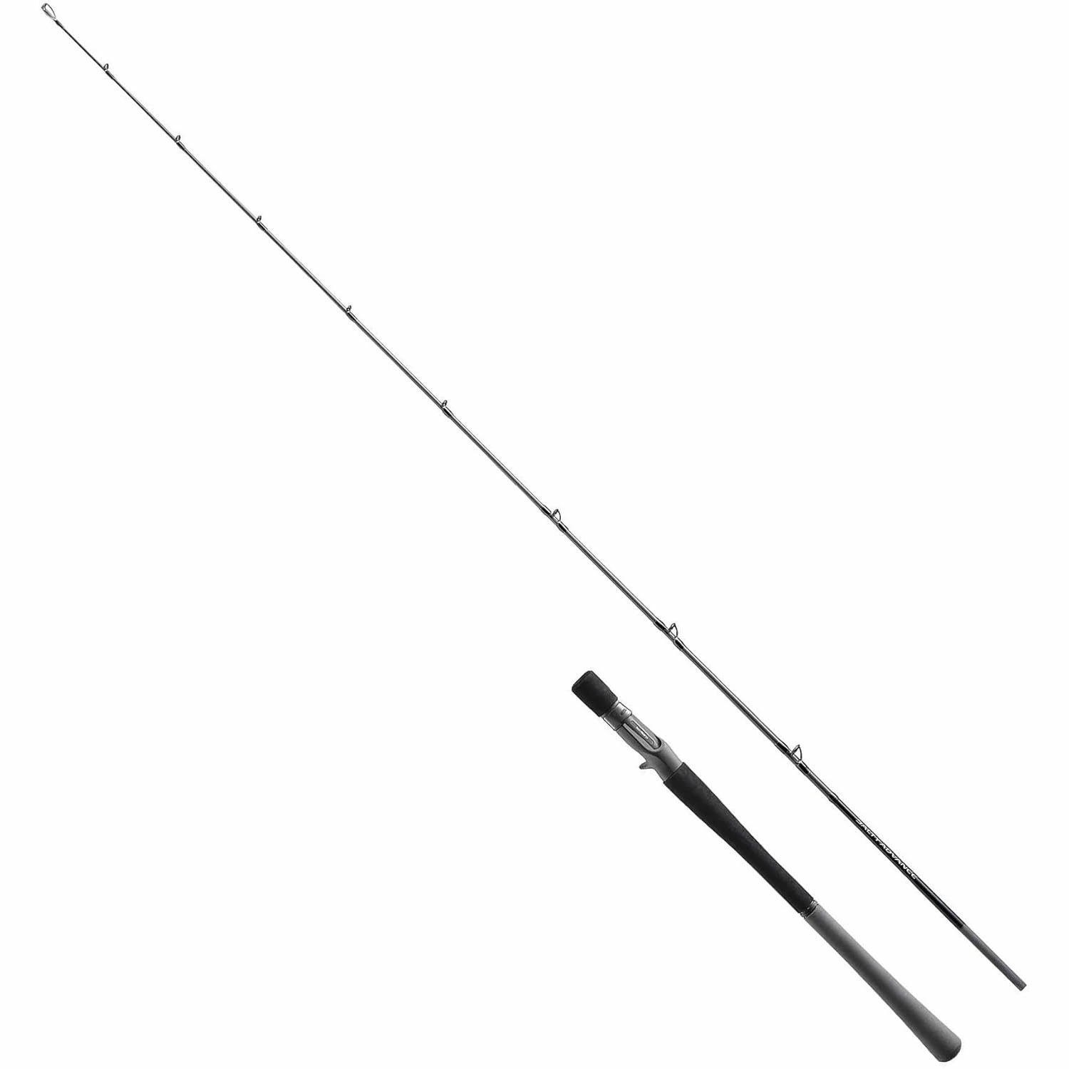 全長:6フィート (1.83m) / 継数(本):2 ※グリップジョイント / 仕舞寸法(cm):140自重(g):160 / 先径(mm):2.2対応ジグウェイト(g):MAX 210 / 適合ラインPE(号):MAX 4グリップタイプ:ストレート / リールシート位置(mm):425 ※ダウンロックカーボン含有率(%):94.6