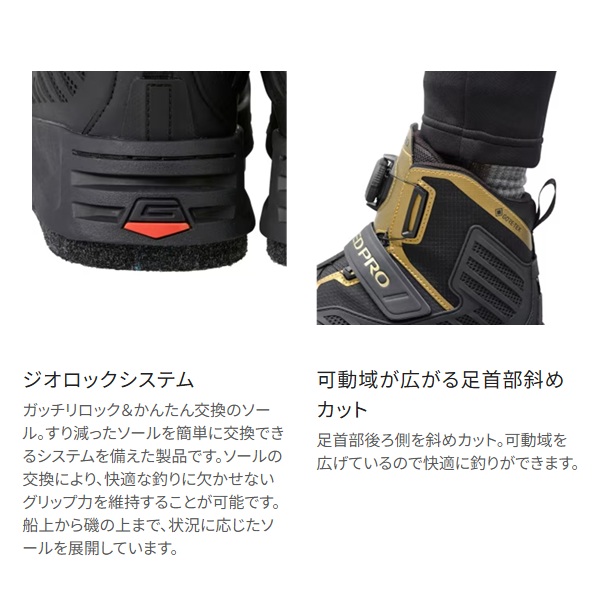 釣りに集中できるシューズを目指し、機能をイチから見直し再構築した磯シューズの最高峰、これがリミテッドプロ。全てにおいて新しくなったリミテッドプロシューズです。幅広甲高の足型を採用してフィット感が良くなっています。剛性を増したBOAフィットシステムが足全体を包み込むように締め上げ、今までにないフィット感が実現しました。定評のある甲ベルトが、足が前にズレることを抑え、前下がりの磯でも爪先の負荷を軽減してくれます。面積が大きくなったジオロックソールTypeAを採用することで複雑な地形の磯でもさらに安定性が向上しました。この結果、今まで以上に疲労しにくく安全に磯に立つことが可能になりました。完全防水と優れた透湿性能のゴアテックスブーティーを採用しハイエンドな仕上がりに磨きをかけ、荒ぶれる磯の上でも足元に一切気を使わず釣りに集中できるシューズになりました。 カラー:ブラッドレッド サイズ:26.5cm ジオロック交換ソール対応サイズ:L ジオロック交換ソール対応種類:A ソールタイプ:カットラバーピンフェルト 参考重量:695g(26cm) ※実物と色が違って見える場合があります。あらかじめご了承下さい。