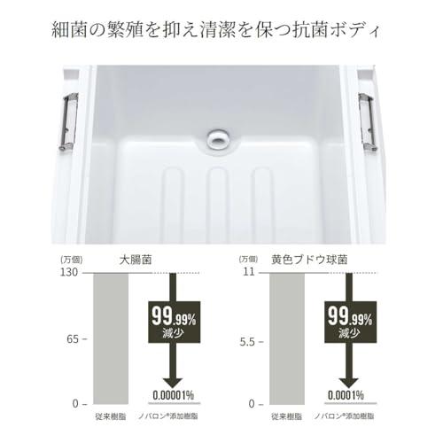 清潔を保つために、抗菌剤『ノバロン 』入りプラスチックを本体インナー部に採用。従来樹脂より大腸菌、黄色ブドウ球菌を99.99%減少させる効果が確認されています。コーティングではなく樹脂練り込みタイプのため、長期間使用後も効果を発揮します。