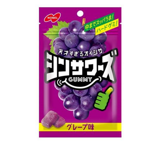 製品の特徴●ノーベル製菓 シンサワーズGUMMY(グミ)グレープ味●中までスッパイ、天才すぎるオイシサのグレープ味のハードグミ!●ハードな弾力食感はそのままに、酸味強化で味全体を底上げ、数段美味しくなったグレープ味が楽しめるハードグミ。●名称:グミキャンデー
