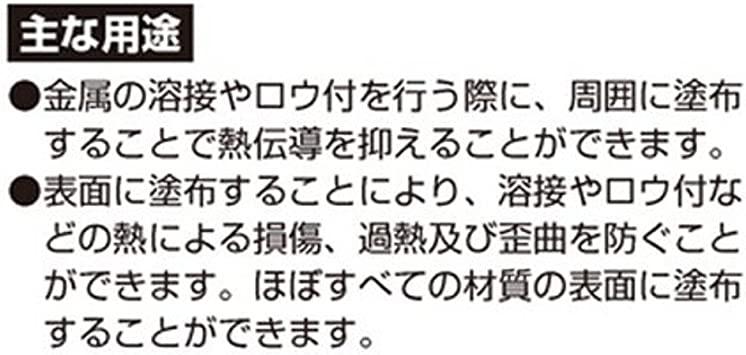 母材の表面に塗布することにより、溶接やロウ付などの熱による損傷、過熱および歪曲を防ぐことができます。