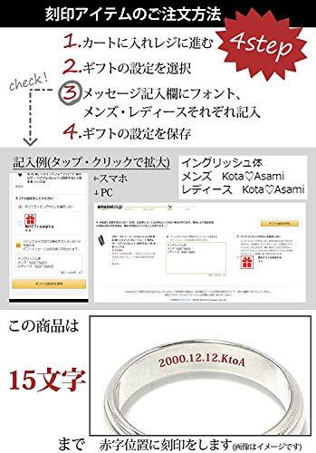 ※ペアそれぞれリングの内側に全角15文字までの刻印が可能です。刻印説明画像を参考に、お好きなフォントをお選び下さい。※刻印文字は商品をカートに入れた後、レジで「ギフトの設定」をクリックし、ギフトメッセージ記入欄にフォント番号・メンズ・レディースをそれぞれご記入下さい。