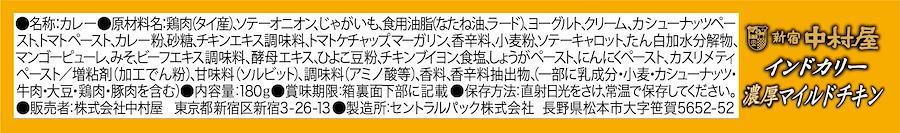 原材料:鶏肉、ソテーオニオン、野菜(じゃがいも、しょうが、にんにく)、食用油脂(なたね油、ラード)、ヨーグルト、クリーム、カシューナッツペースト、トマトペースト、カレー粉、砂糖、チキンエキス、トマトケチャップ、マーガリン、香辛料、小麦粉、ソテーキャロット、たん白加水分解物、マンゴーピューレ、みそ、ビーフエキス、酵母エキス、ベースン粉、チキンブイヨン、食塩、増粘剤(加工でん粉)、甘味料(ソルビット)、調味料(アミノ酸等)、香料、香辛料抽出物、(原材料の一部に豚肉を含む)商品サイズ(高さx奥行x幅):170mm×130mm×125mm【重要】メーカーによる商品リニューアルに伴いパッケージ(内容量も含む)変更が行われた場合、新パッケージでお届け致します事ご了承願います。