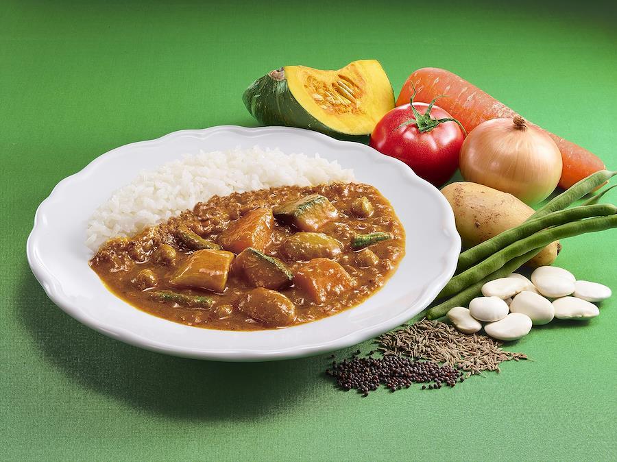食べごたえのある大きくカットしたかぼちゃ、じゃがいも、にんじん、豆の女王「白花豆」など6種のたっぷり具材。スパイス3段仕込み製法で仕上げた芳醇な香リと、野菜から溶け出す自然で濃厚な甘みと旨みがコク深いベジタブルカリーです。レンジ調理できるようになりました。