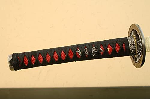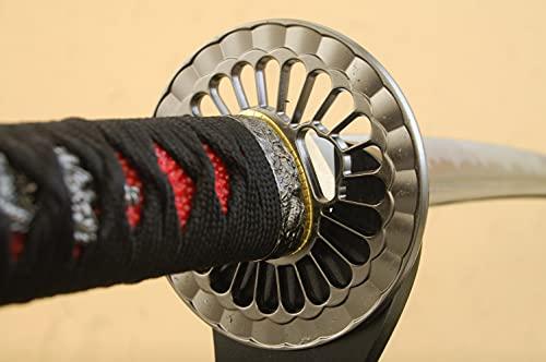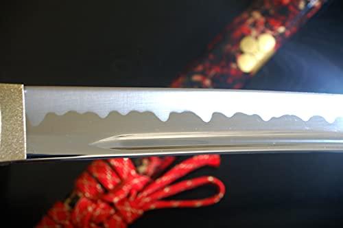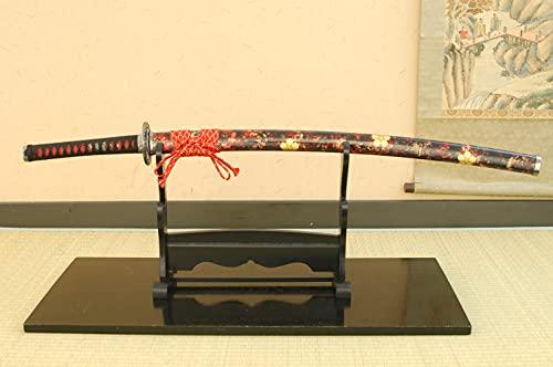 内容物:刀(模造刀)×1、鞘×1、蒔絵(家紋)シール、刀拭クロス×1、模造刀証明書兼取扱説明書×1 サイズ:全長106cm、刃渡り73cm 重量:1200g(鞘を払って950g) 仕様:刀身 亜鉛合金(クロムメッキ仕上げ)、柄 樹脂製、鍔 合金製、鞘 木製(黒地金赤刷毛目塗り仕上げ) 製造:岐阜県関市
