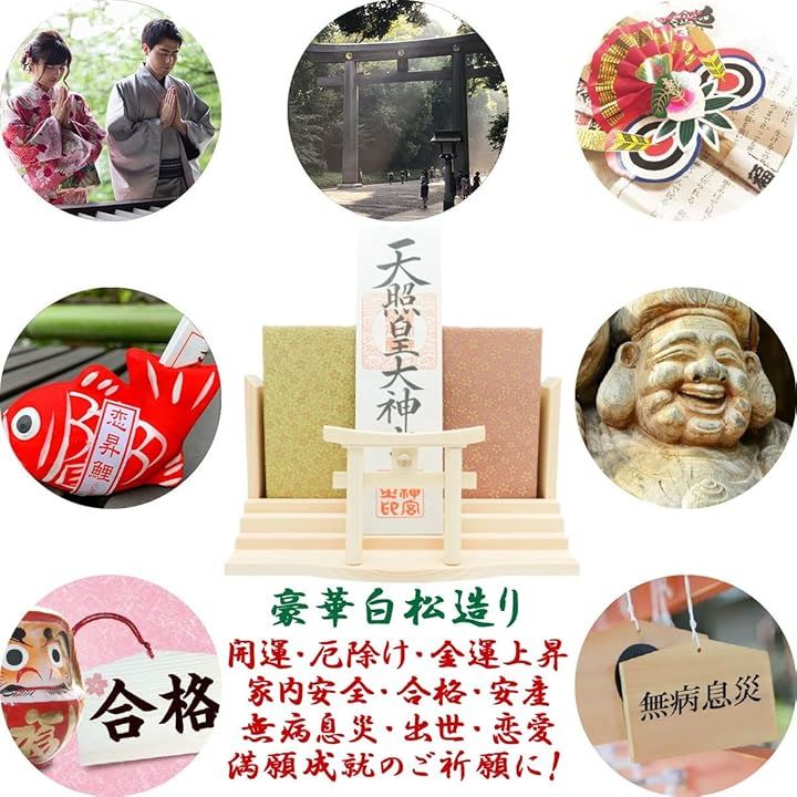 「用途」壁掛け 神棚 お札立て 御朱印帳飾り 御神札飾り 御守り飾り 木札差し 御守り入れ 棚板「 開運 招福運 初宮詣 七五三詣 合格祈願 厄祓 安産祈願 病気平癒 必勝祈願 交通安全 新車祓 家内安全 業務安全 商売繁盛 旅行安全 結婚式 その他、諸祈願 」