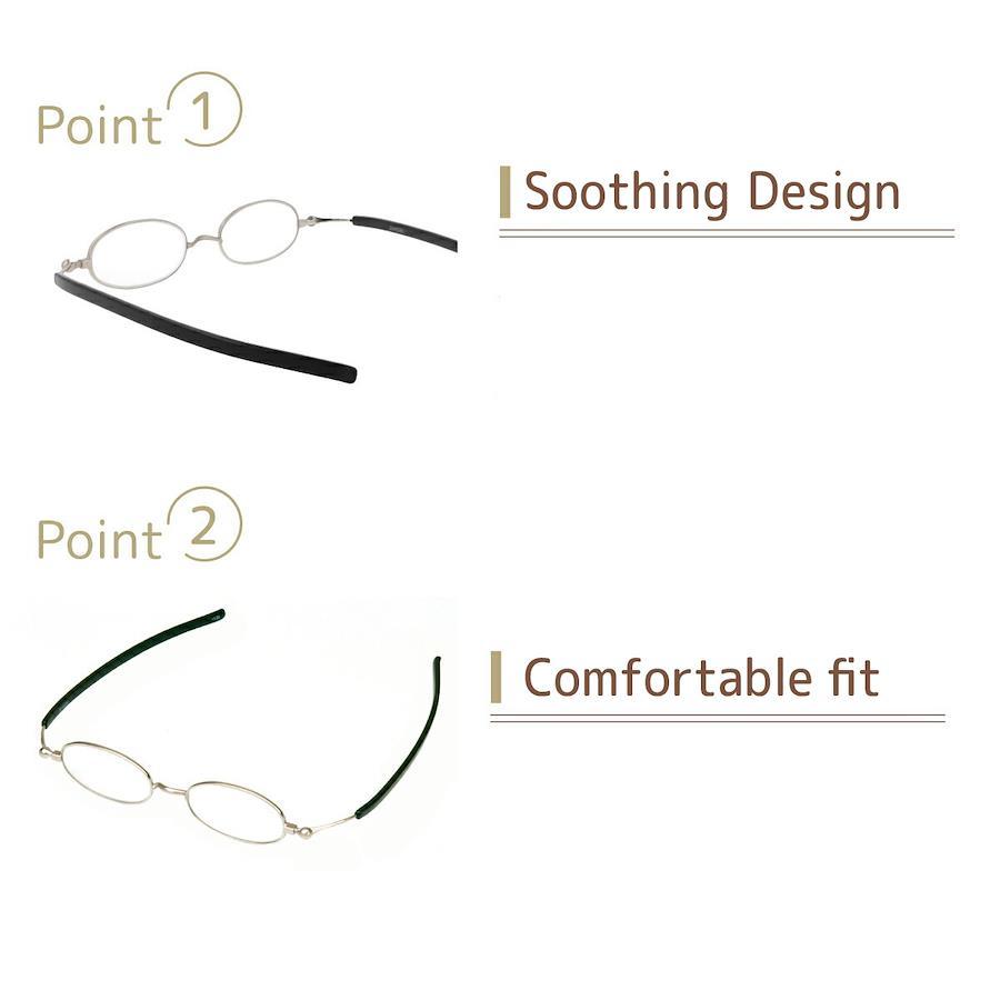 軽量。ケース付で携帯性にすぐれ、長財布やポーチに入れいつでも使えます。40代、50代のメガネ初心者の方も安心。度数は、+1.0、+1.5、+2.0、+2.5、+3.0。老眼鏡ながらコンパクトに収納でき、鞄やポケット、長財布等に入れて気軽に持ち歩けるだけでなく、セカンドメガネや災害時のエマージェンシーメガネとしてもご活用いただけます。