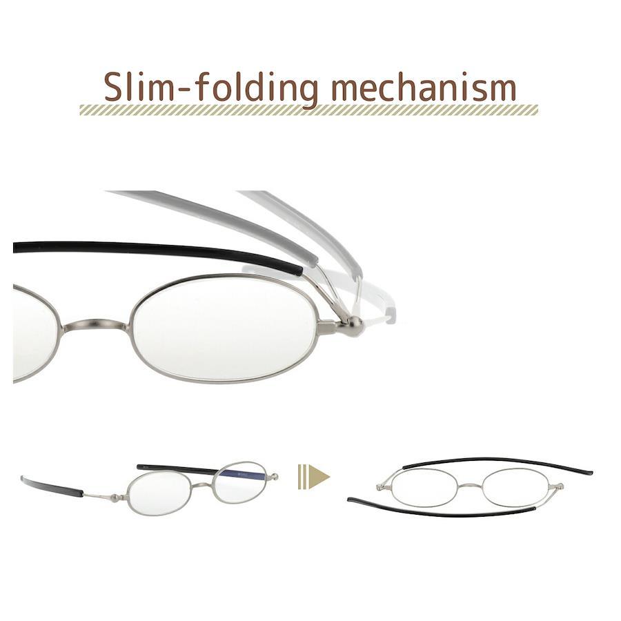 「栞 SHIORI」ブランドの折り畳み式リーディンググラス。