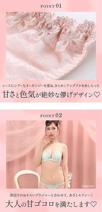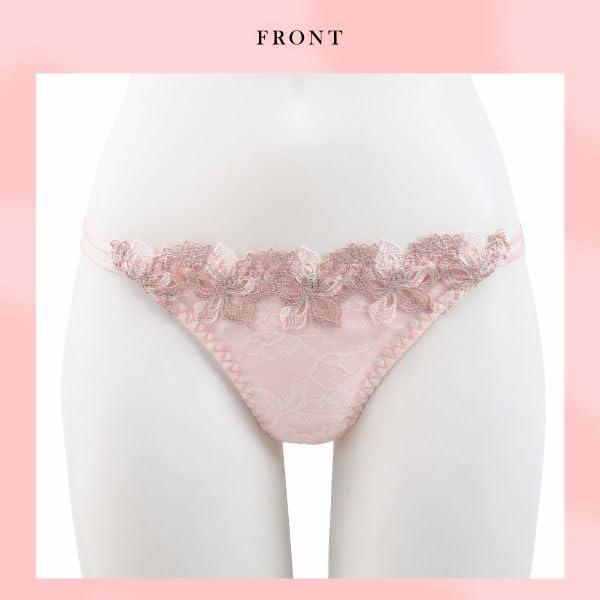 【ラブジェリー チャームリリー ブラセット】とコーディネイトできる、大人の甘ゴコロを満たす、あざとセクシーな愛されえちえちTバック☆ホワイトレースにシアーなオーガンジーを重ね、ラメ糸きらめくアップリケとジュエルチャームをあしらった、甘さと色気が絶妙な儚げデザイン。指を絡めたくなる、Wループのストリングが腰回りを華奢でセンシュアルに魅せてくれます。後ろ身生地はタテヨコに伸縮性のあるなめらかでフィット感のあるはき心地。フロントはクロッチと共布の綿混素材の裏打ち付きで、透けにくくやさしい肌あたりです。レディース
