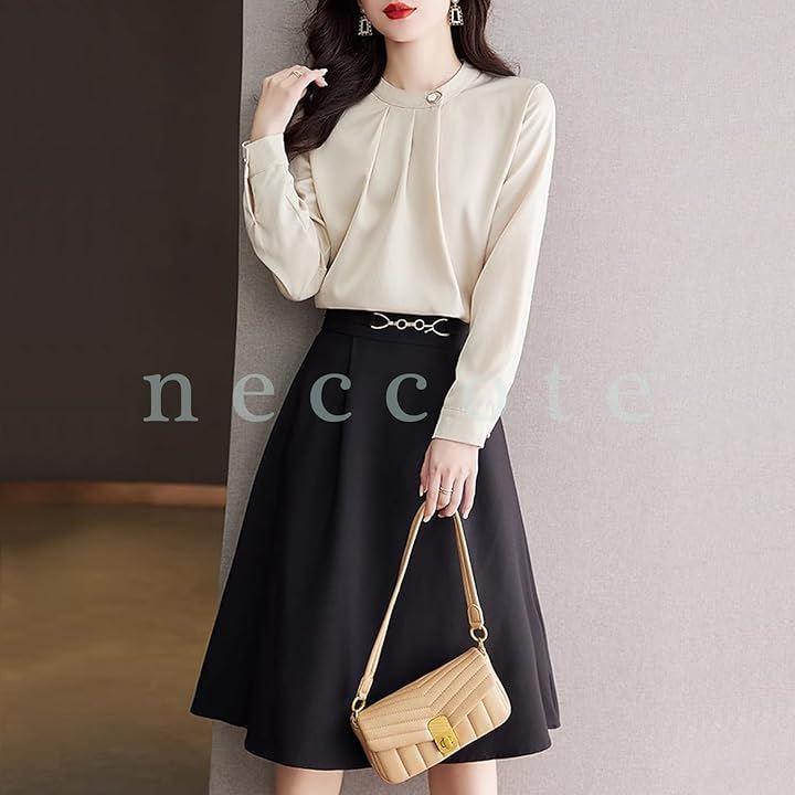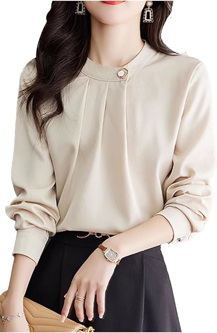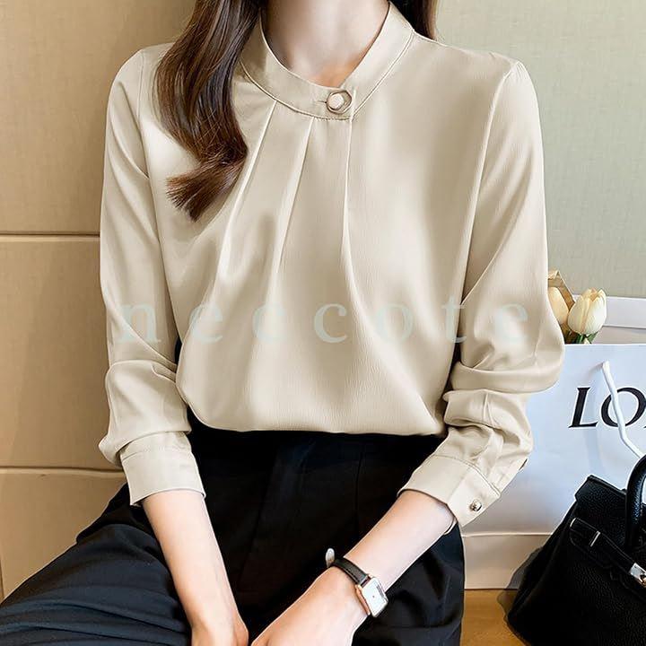 Shirts, women's blouses, stand-up collar, formal, business, office, silky, simple, elegant, long sleeves