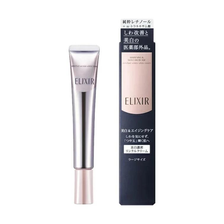商品詳細しわ改善と美白の医薬部外品。美白&エイジングケア*。しわを気にせず、「つや玉」輝く肌へ。ヒアルロン酸を生み出し水分量を増やすことで柔軟な肌に導き、しわを改善する薬用有効成分、純粋レチノール配合。メラニンの生成を抑え、シミ・そばかすを防ぐ美白有効成m-トラネキサム酸**配合。 *年齢に応じたうるおいケア **トラネキサム酸