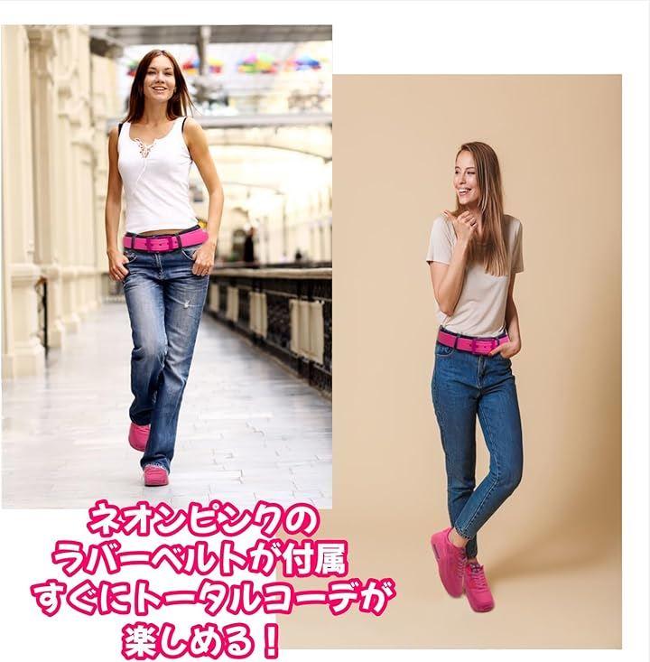 すぐに履いて楽しめるように、ネオンピンクのラバーベルトが付属。コスパ良し。 スニーカーとベルト、同色で合わせて可愛いピンクファッションを楽しみましょう。
