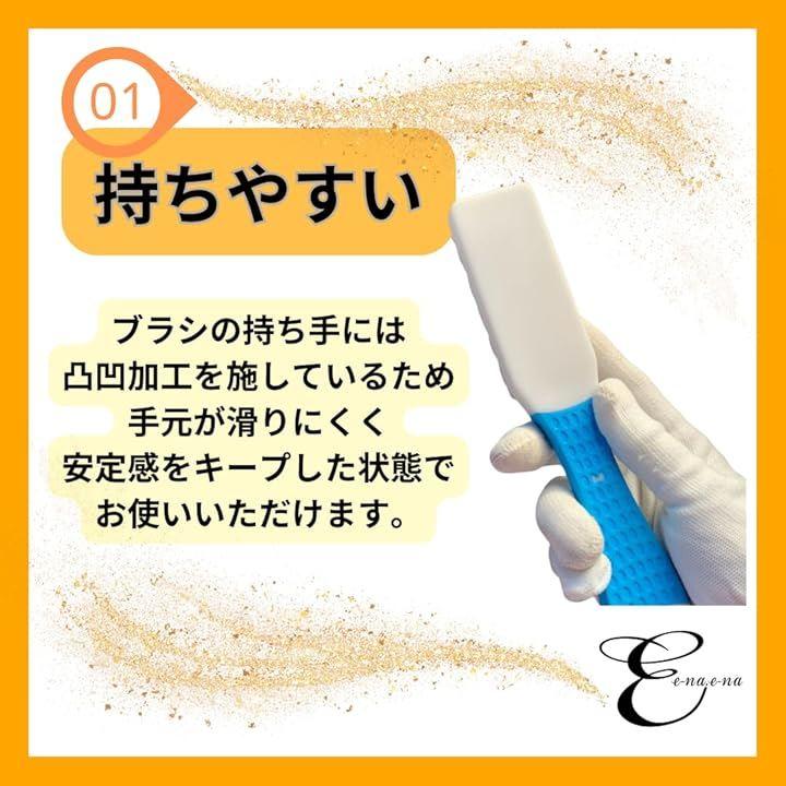 ブラシの持ち手には凸凹加工を施しているため、手元が滑りにくく安定感をキープした状態でお使いいただけます。