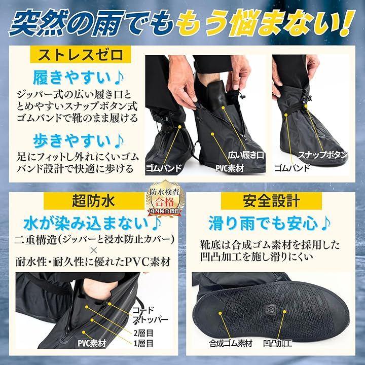 「表地」完全防水PVC「底材」合成ゴム「靴カバーサイズ」S,M,L,XL,2XL,3XL,4XL 「カラー」ブラック,ホワイト