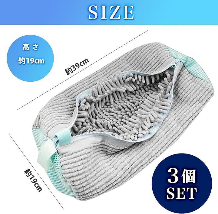 シューズ用洗濯ネット(3枚セット):長39x幅19cm、色:グレーx3、ブルーx3、ホワイトx3、ミックス(グレー、ブルー、ホワイト各1)マイクロファイバー、*モニターの環境により、色の見え方に若干差が生じる場合がございます。