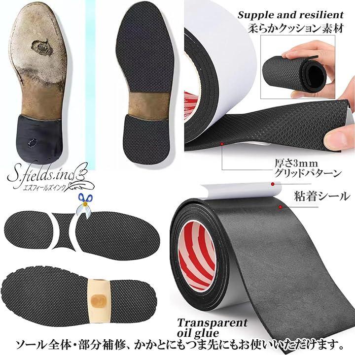 厚さ3mmなので、ソール全体の修理、もしくは補修箇所のみの部分補修、かかとにもつま先にもお使いいただけます。